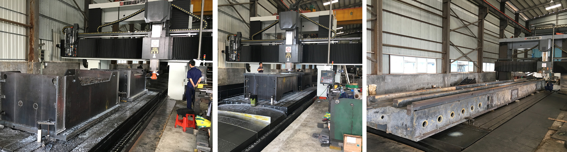 工廠設備有:12米5米3米超大型龍門CNC加工中心、8米6米4米數控龍門銑床、8米龍門導軌磨床、大水磨、大型鏜銑床。